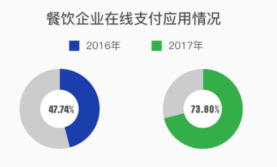 對(duì)比微盟研究院發(fā)布的《2016上半年中國(guó)智慧餐飲服務(wù)市場(chǎng)發(fā)展研究報(bào)告》,報(bào)告數(shù)據(jù)顯示,2017年餐飲企業(yè)應(yīng)用移動(dòng)支付的比例達(dá)到73.8%,而2016年這一數(shù)據(jù)為47.74%;2017年餐飲企業(yè)應(yīng)用在線點(diǎn)餐的比例從2016年的37.25%提升到50.6%。這表明,餐飲企業(yè)的智慧化應(yīng)用程度正在提升。