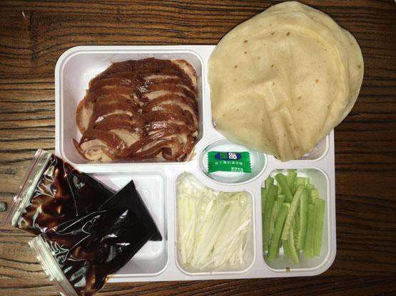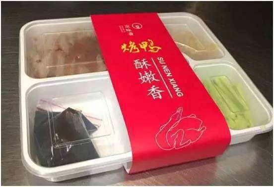 比如京味齋的招牌菜烤鴨,為了讓烤鴨的黃瓜條、蔥絲、荷葉餅、甜面醬都分開擺放,京味齋自己設(shè)計了一款多格烤鴨專用餐盒,滿足了烤鴨外賣對口感和顏值的雙重需要。