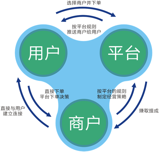 如圖中表述平臺(tái)是一個(gè)信息中介商,起到的最大的作用就是一邊連接用戶一邊連接商戶,然后通過算法篩選出來較優(yōu)匹配進(jìn)行推薦,用戶的整個(gè)決策過程是從從用戶到平臺(tái)到商戶。那么只要我們能夠影響到用戶的信息接收與判斷,我們就能在平臺(tái)固有的規(guī)則之外建立一套屬于自己的流量經(jīng)營(yíng)方法,使得用戶的整個(gè)決策過程變?yōu)榱藦挠脩舻缴虘?。我喜歡稱這個(gè)過程為“與用戶建立情感的連接”,你想想如果同樣價(jià)格差不多味道差不多的門店在你面前,你是不是更加愿意選擇你更熟悉的店鋪呢。