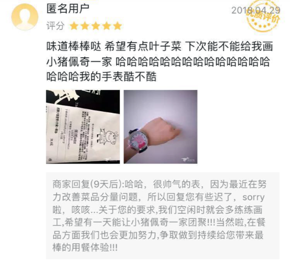 我們利用自己研發(fā)的IT支撐系統(tǒng)實(shí)現(xiàn)了小票的兩種品牌營(yíng)銷方法,一個(gè)是熱點(diǎn)營(yíng)銷一個(gè)是口令營(yíng)銷。在前些時(shí)間突然流行起來畫小豬佩奇,以此來跟用戶進(jìn)行互動(dòng),但是一個(gè)品牌幾十個(gè)門店,一個(gè)門店大幾百單,畫小豬佩奇是個(gè)非常龐大的工程。但我們利用小票打印圖片的功能,預(yù)先手繪小豬佩奇,然后設(shè)置每個(gè)訂單默認(rèn)在小票頭打印,以此將畫小豬佩奇的事情交給系統(tǒng)自動(dòng)實(shí)現(xiàn),大大降低了人工,提高了效率。同時(shí)我們還會(huì)利用自定義小票功能在小票上播報(bào)營(yíng)銷廣告,例如我們?cè)谛∑鄙洗蛴∫痪湓挕凹慈掌鹬炼嗌偬?hào)止,在本店下單并備注綠豆沙即送價(jià)值冰涼綠豆沙一份”,如果用戶備注了綠豆沙三個(gè)字,系統(tǒng)會(huì)自動(dòng)抓取并直接在菜品欄中寫明“備注口令贈(zèng)送綠豆沙一瓶”,這樣門店也不需要去看備注需要送啥,時(shí)間有沒有截止,只用看菜品欄目有沒有贈(zèng)送信息就好。