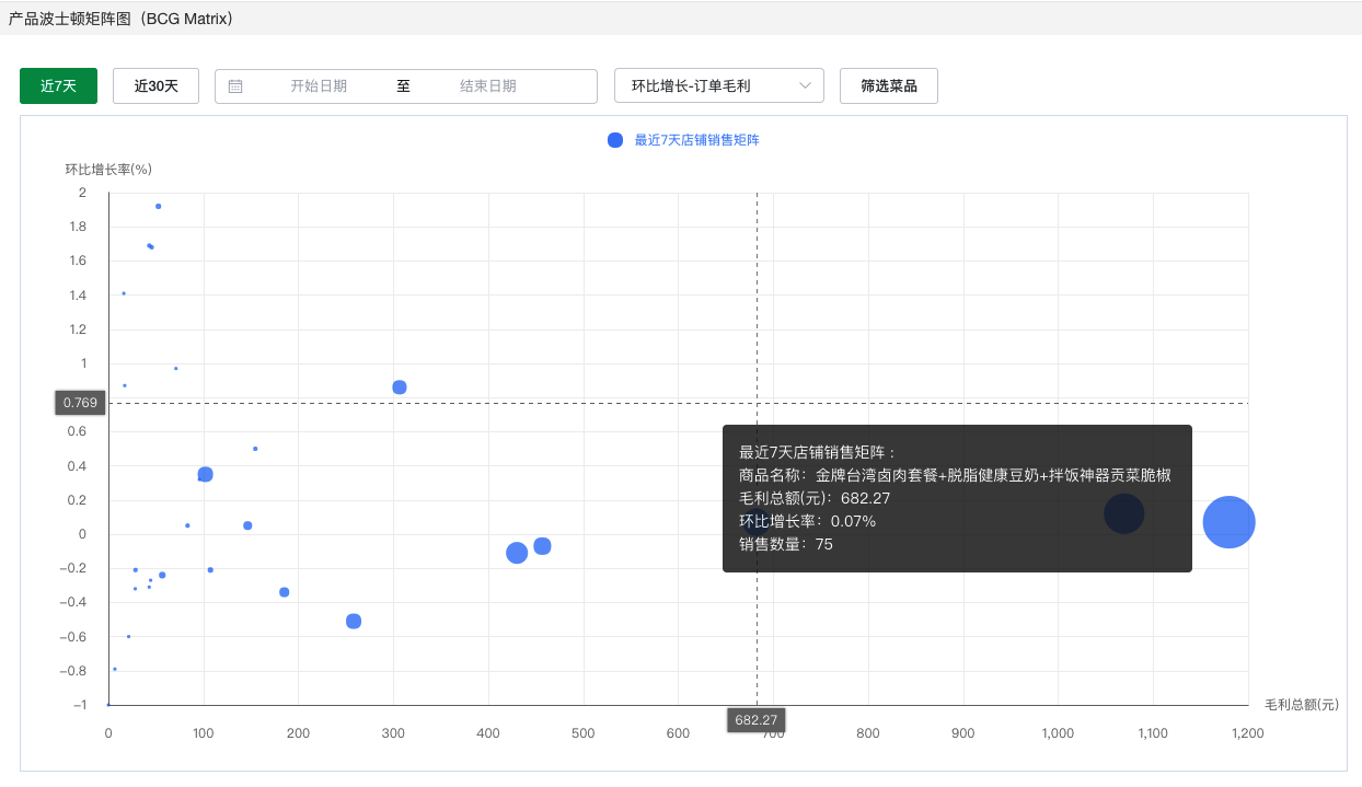 對(duì)于平臺(tái)來說他需要的是訂單量與GMV來評(píng)估他的市場(chǎng)份額,但是對(duì)于商戶來說更在乎的是毛利情況,平臺(tái)希望你做200單賺1000塊,但是老板更希望100單賺1000塊,因?yàn)檫@樣他的其余資源投入小于200單。 外賣由于其活動(dòng)的多變性與數(shù)據(jù)結(jié)構(gòu)的復(fù)雜性導(dǎo)致想要核算利潤(rùn)變得非常復(fù)雜,所以導(dǎo)致很多商戶做了2-3個(gè)月之后才猛然醒悟根本就不賺錢。要算清楚這筆賬需要一個(gè)個(gè)訂單統(tǒng)計(jì)成本計(jì)算利潤(rùn),靠手工統(tǒng)計(jì)完全不現(xiàn)實(shí),需要借助外部的系統(tǒng)完成這一項(xiàng)工作。當(dāng)我們能夠每天計(jì)算出來毛利,我們就能準(zhǔn)確的知道每天的活動(dòng)、競(jìng)價(jià)等投入是否正常。