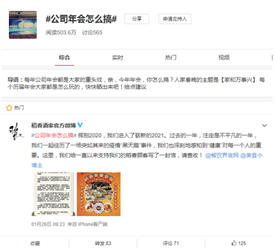 一邊,稻香酒家“派對團餐外賣”新品火爆開賣;另一邊,由稻香酒家發(fā)起的#公司年會怎么搞#微博話題收獲超500萬(截至發(fā)稿前)的閱讀量,這背后,還有一個不容忽視的客觀因素:特殊時期,原本在酒店里載歌載舞的年會,在餐廳里把酒言歡的家宴,均被蒙上了安全風險的陰影。稻香酒家“派對團餐外賣”之所以大受歡迎,在一定程度上還得益于它打破了空間與時間的限制,讓顧客在盡可能規(guī)避風險的情況下實現了 “開宴自由”。
