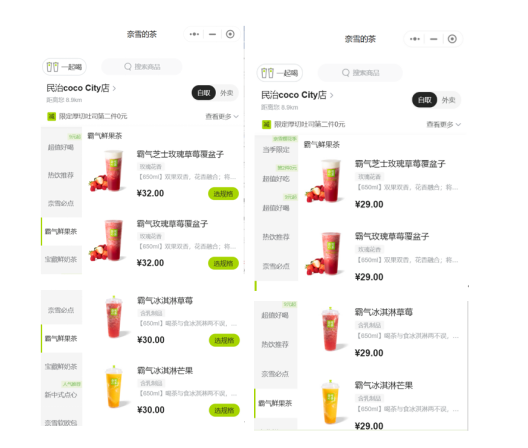 奈雪原“3”字頭產(chǎn)品降價前后對比