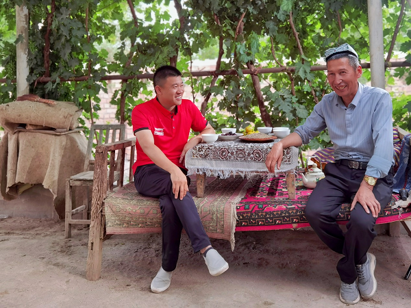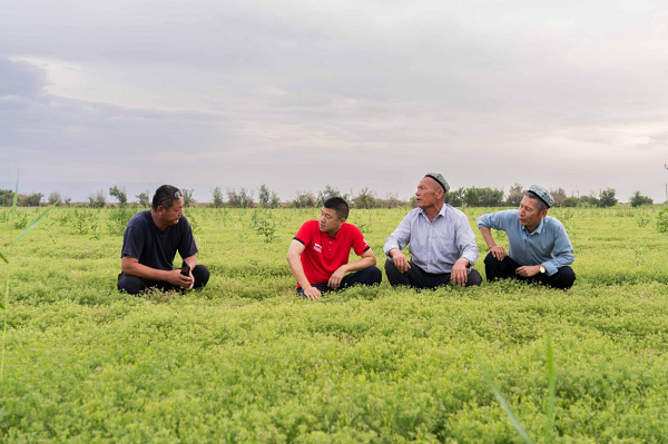 在與當(dāng)?shù)剞r(nóng)戶(hù)親切交流之后,管氏翅吧創(chuàng)始人管其兵深入田埂,在一株株孜然植株間考察當(dāng)季孜然的產(chǎn)新情況。5月底的孜然種子呈現(xiàn)嫩綠色,粒粒飽滿(mǎn),散發(fā)著獨(dú)特的香氣。管其兵輕撫著孜然植株嫩綠色的葉片,并不斷詢(xún)問(wèn)關(guān)于孜然生長(zhǎng)情況的細(xì)節(jié)?!巴赀@時(shí)候已經(jīng)在收割了?!碑?dāng)?shù)剞r(nóng)戶(hù)依力哈木大叔向他介紹到,“今年閏二月,孜然生長(zhǎng)期延遲,長(zhǎng)勢(shì)也更加喜人,估計(jì)今年是個(gè)好收成!”言語(yǔ)之間,依力哈木大叔臉上泛出淳樸而快樂(lè)的笑容。