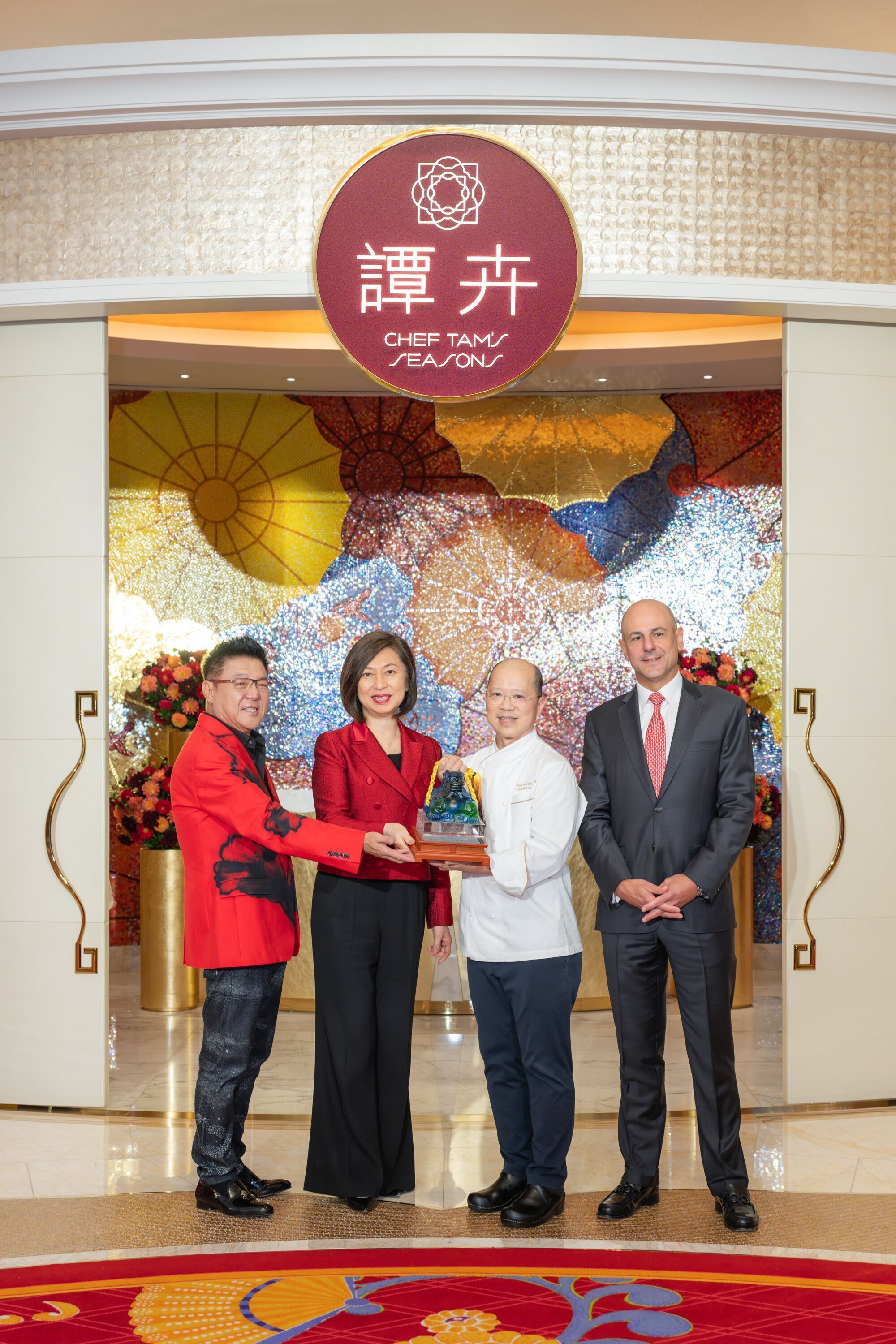 譚大師從永利澳門有限公司總裁、董事會(huì)副主席陳志玲女士手上接過帥印