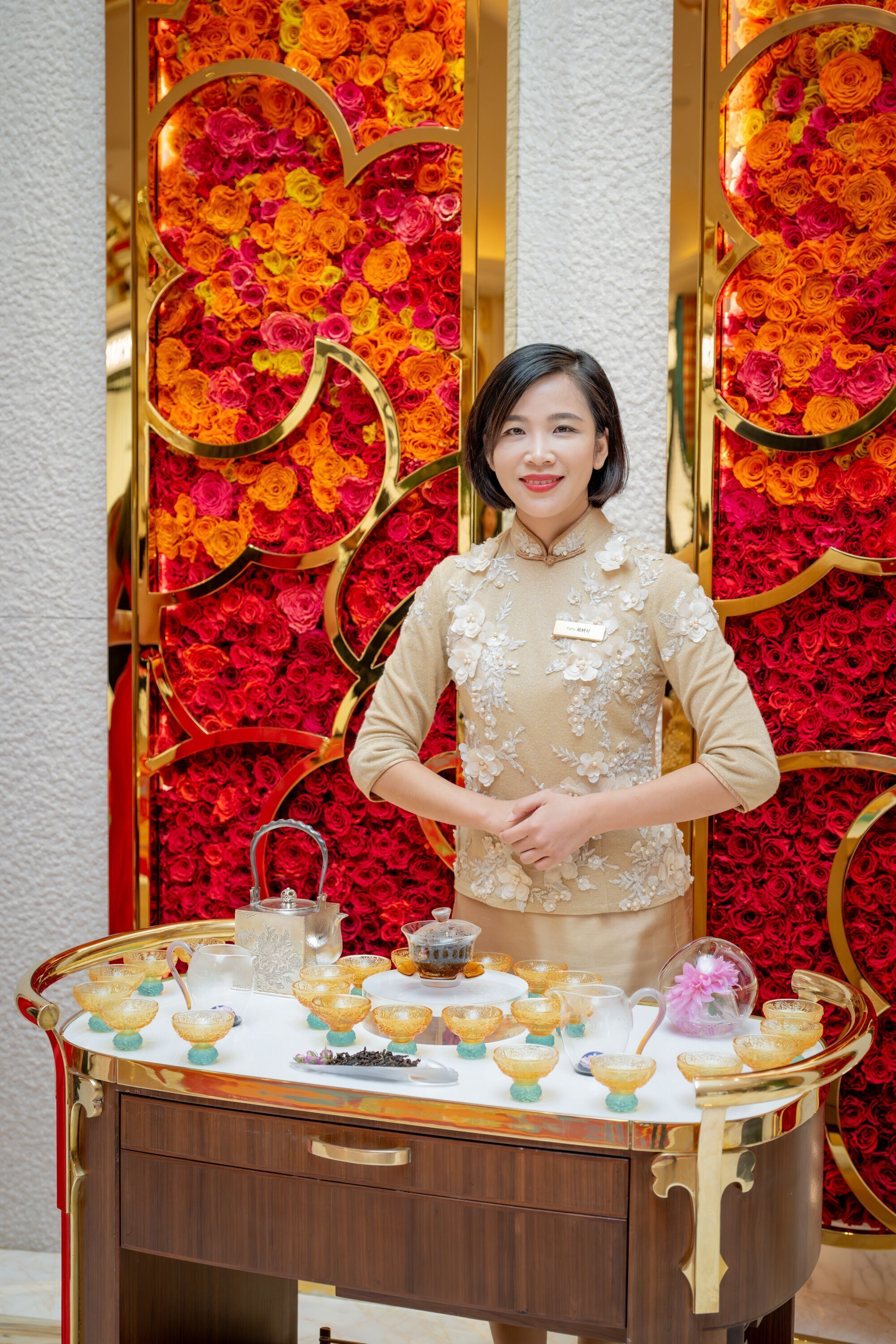在悠揚(yáng)的新中式音樂襯托下,開幕酒會(huì)悠閑風(fēng)雅,餐廳茶師為來賓表演了“譚卉”匠心獨(dú)韻的茶藝,按照餐廳二十四節(jié)氣為主題而打造的專屬配茶技藝,讓“譚卉”一期一會(huì)的時(shí)令珍味升華之余也體現(xiàn)了自然而為的態(tài)度和人文品味?;顒?dòng)期間餐廳打造了“譚卉”獨(dú)特的精致小點(diǎn)與品飲與活動(dòng)嘉賓和賓客們共享,包括魚子元貝脆饅頭、紅?添香、驚螯皇家基爾,讓賓客率先感受節(jié)氣的更迭和意趣。儀式簡單而隆重,譚大師從永利澳門有限公司總裁、董事會(huì)副主席陳志玲女士手上接過帥印,寓意由譚大師帶領(lǐng)的“譚卉”將為澳門作為享譽(yù)國際的“世界美食之都”傳承與發(fā)揚(yáng)中華美食文化, 繼續(xù)為賓客帶來極致的粵菜體驗(yàn)。