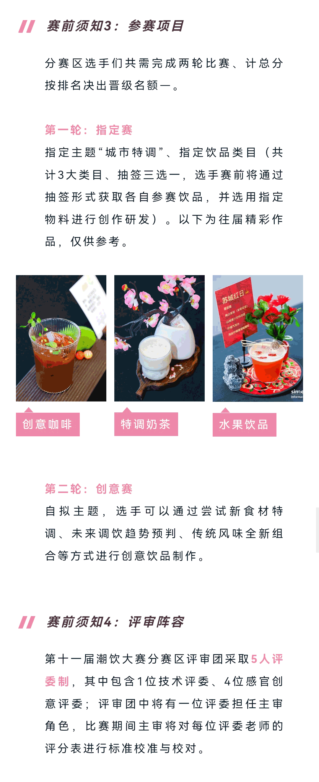 不管是咖啡師還是調(diào)飲師,不管是技術(shù)研發(fā)還是飲品愛好者,想要賽場(chǎng)奪桂、擁有自我高光時(shí)刻、走向更高的潮飲舞臺(tái)嗎?還不趕緊收下這份賽前須知,速速報(bào)名參賽吧。