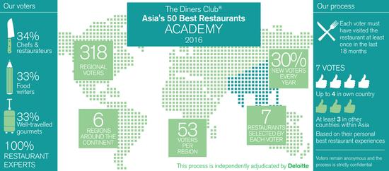 據(jù)悉,50最佳餐廳評選最初始于2002年的全球50最佳餐廳評選,后經(jīng)同一主辦方籌劃,于2013年起開辦亞洲榜,今年是第四次評選。和全球榜評選機制相同,亞洲50最佳餐廳排行榜由318位亞洲美食專家投票產(chǎn)生,且這300多位評審將保持每年30%的更新率。主辦方稱,入圍餐廳不一定要符合某種標準,在開業(yè)時間、菜品上沒有具體要求,只要在投票期間開門營業(yè),并且公布榜單后短時間不關張就行,能不能評上全憑好味道。