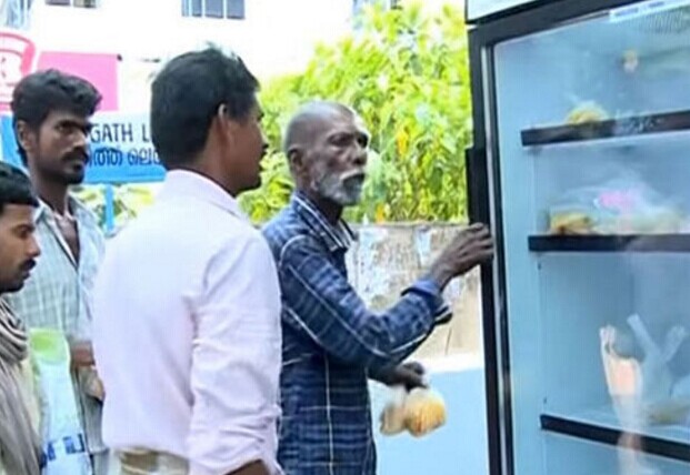 近日,印度某餐廳因在餐廳外放置一個冰箱,免費向流浪者提供食物引起關注。