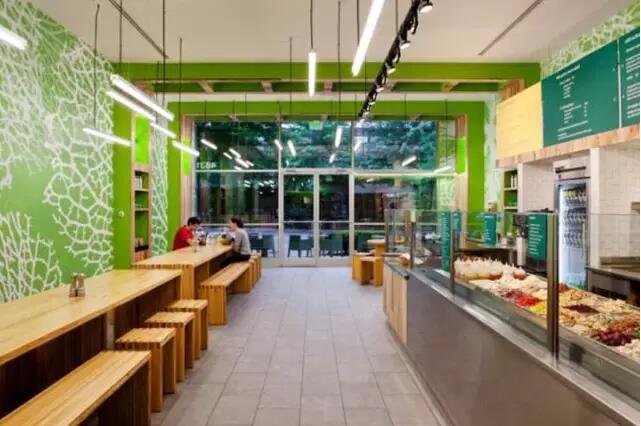 Sweetgreen的店面設(shè)計給人的感覺就是清新、自然。