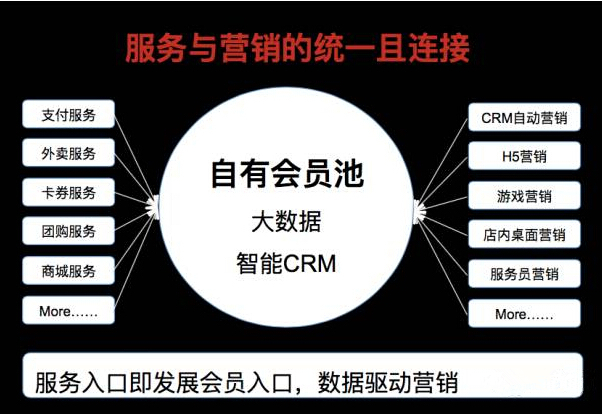 實(shí)現(xiàn)與每個(gè)客戶實(shí)現(xiàn)連接。過去餐廳與客戶連接的是餐品,餐廳并不清楚用餐的客戶是誰,有什么特征。因此營銷是也只能廣撒網(wǎng)。據(jù)數(shù)據(jù)統(tǒng)計(jì),傳統(tǒng)廣撒網(wǎng)的營銷,實(shí)際到店消費(fèi)率只有 3%。因此需要一種連接所有消費(fèi)者的平臺(tái),識(shí)別每一個(gè)消費(fèi)者,并記錄跟蹤消費(fèi)行為,形成精準(zhǔn)的線上線下的營銷系統(tǒng),在不替代原有的 ERP 和業(yè)務(wù)系統(tǒng)基礎(chǔ)上,實(shí)現(xiàn)平滑過渡和兼容。真正實(shí)現(xiàn)消費(fèi)即會(huì)員,會(huì)員即數(shù)據(jù),數(shù)據(jù)即營銷。