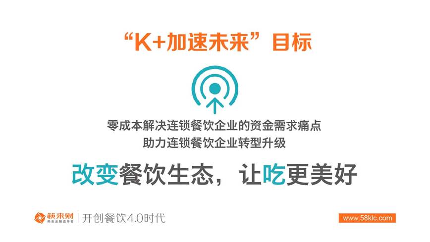 “K+ 加速未來(lái)”連鎖餐飲企業(yè)金融助推計(jì)劃旨在以零成本解決連鎖餐飲企業(yè)的資金需求痛點(diǎn),助力連鎖餐飲企業(yè)轉(zhuǎn)型升級(jí),提升競(jìng)爭(zhēng)能力。該計(jì)劃的核心內(nèi)容包括如下三點(diǎn):