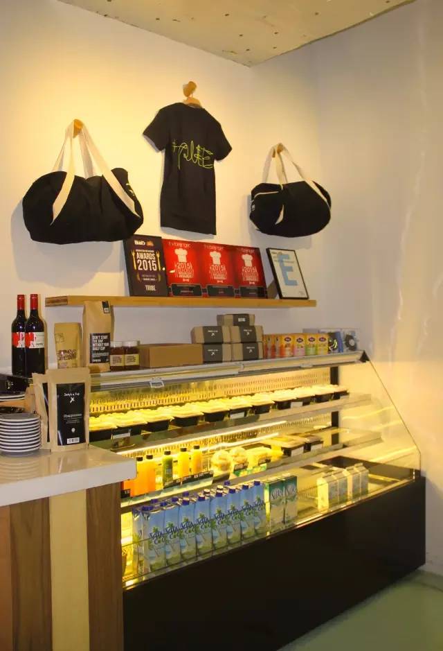 在北京,Tribe餐廳則直接把店鋪開到了健身房。經(jīng)過3個(gè)月準(zhǔn)備時(shí)間,它于2015年12月進(jìn)駐了三里屯的一所健身房,這里原本是健身房預(yù)留的餐飲空間,但他們無暇分心管理,于是選擇和餐廳直接合作。這里以外賣為主,一半是吧臺(tái),一半是展示、存放即食餐點(diǎn)的冰柜。
