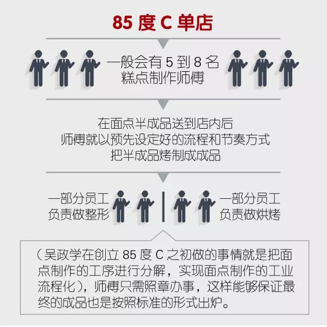 分解操作流程并實(shí)現(xiàn)標(biāo)準(zhǔn)化對(duì)于餐飲企業(yè)來(lái)說(shuō)并非創(chuàng)新,但是85度C竟然能夠把做面包的手藝都進(jìn)行拆分做精細(xì)的標(biāo)準(zhǔn)化。