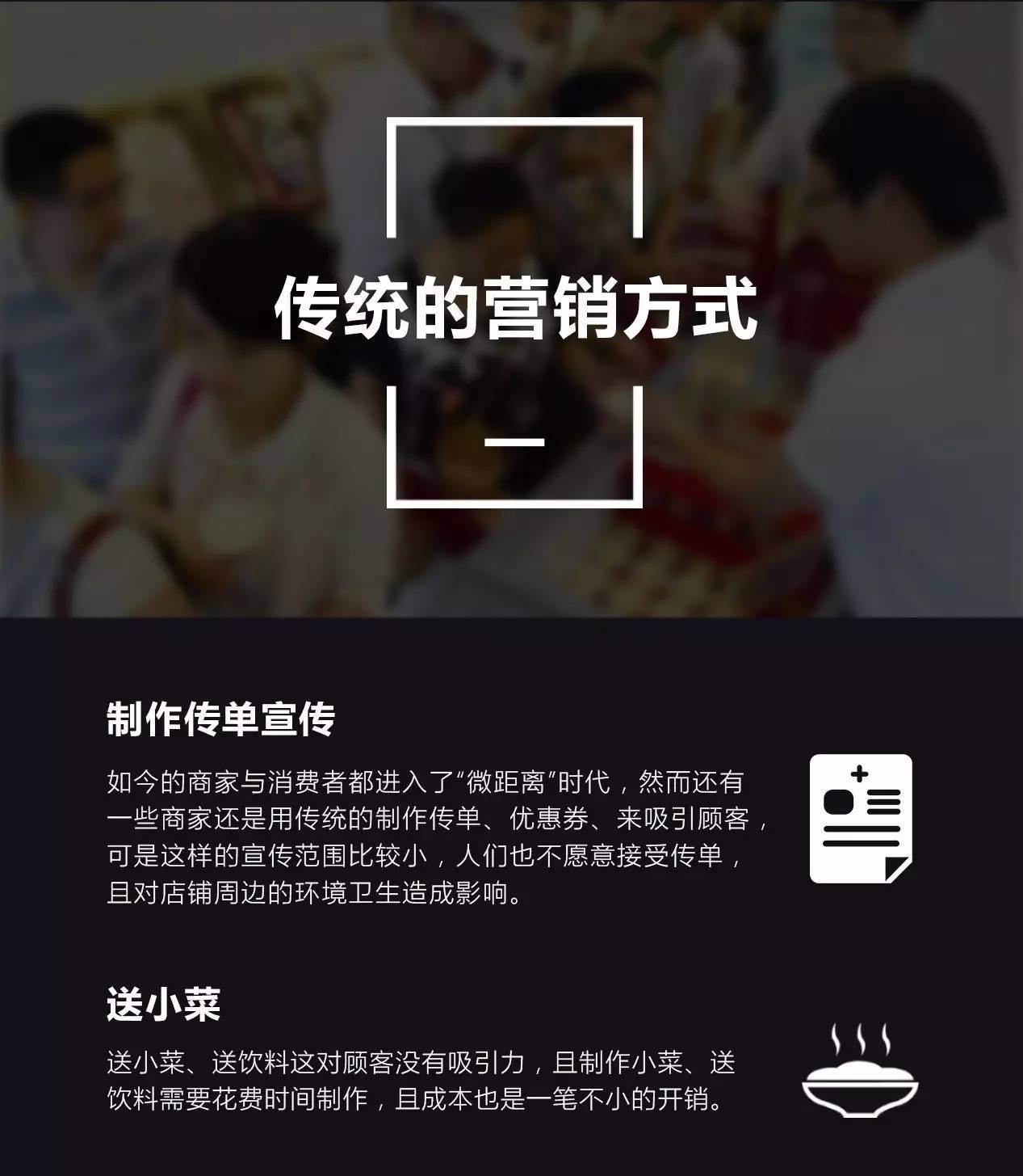 現(xiàn)在的餐飲消費(fèi)主力軍是8090后,他們的消費(fèi)觀與上一代截然不同,這類年輕人更喜歡時(shí)尚新奇的事物。年輕人吃飯聚餐會(huì)選擇近期熱門餐廳,因此不少新型餐廳會(huì)選擇在微信公眾號(hào)做軟文推廣。新媒體的崛起,讓傳統(tǒng)餐飲業(yè)坐立不安,做餐飲十幾年竟拼不過一個(gè)互聯(lián)網(wǎng)餐廳,不是你拼不過他們,而是你不懂得抓住消費(fèi)者的喜好,不懂得營(yíng)銷。很多人會(huì)說推廣可以選擇做打折和送小吃之類,但你是否想過,千篇一律的打折已經(jīng)讓消費(fèi)者無感知,只是在利用餐廳利潤(rùn),最終效果差強(qiáng)人意,只會(huì)造成浪費(fèi)。