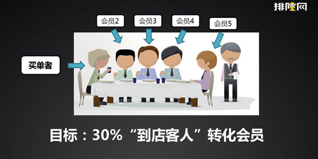 這是一個吃飯的場景。可能很多餐飲老板會嘗試去辦會員卡,一般是誰買單就推薦誰辦理。這個事情沒有錯,但在互聯(lián)網(wǎng)會員營銷模式下,我們可以發(fā)散思維去想想能不能讓其他顧客也成為我們的會員。這樣可以讓會員積累的數(shù)量至少擴大三到四倍。