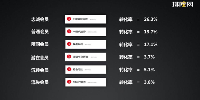 首先,消費者數(shù)據(jù)分析和挖掘是我們會員營銷最具技術含量也最科學的一個理念。采用會員營銷模式,能記錄的信息非常多,比如用什么手機、哪天有空、幾個人來、喜歡什么口味、喜歡什么菜品,消費頻次怎么樣,餐飲經(jīng)營者可以比消費者更了解他自己。