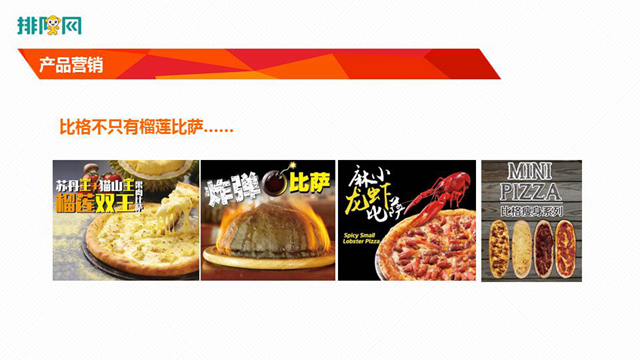 1.產(chǎn)品營銷我們梳理出我們的爆品是榴蓮比薩,所以我們在2016年推出了“比格不只有榴蓮比薩……”口號??谔柾瞥龊髢H僅20多天,北京所有門店同店同比銷售額增加了20%。