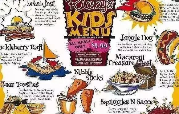 親子餐廳的菜單設(shè)計(jì)的跟童話故事界面相差無幾,很容易吸引小孩子的眼球。