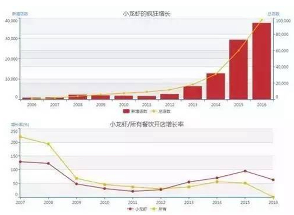 這僅僅是小龍蝦實體店火爆的冰山一角,據(jù)有關數(shù)據(jù),2016第二季度,小龍蝦專營店新增數(shù)量同比上漲了33%,總數(shù)量達到了17670家,是肯德基中國門店數(shù)量的三倍。