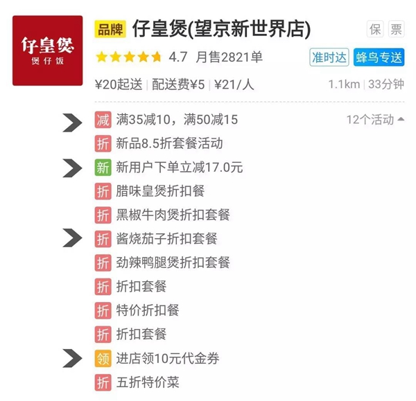 商家優(yōu)惠券/代金券:能夠達到引流、拉新的效果。餓了么的代金券還可設置為店內(nèi)外均發(fā)放,天降券、微信分享券、領券中心、進店領券等多種形式的組合,除了吸引平臺用戶外,還能從微信朋友圈、好友分享等渠道引流。