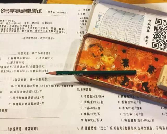 北京的一家80后懷舊主題餐廳“8號(hào)苑”,整個(gè)餐廳不僅還原了教室的情景,連菜單都設(shè)計(jì)成了試卷的形式,點(diǎn)菜變成了做選擇題,非常有代入感。從大眾點(diǎn)評(píng)上的反饋來(lái)看,消費(fèi)者對(duì)這樣的設(shè)計(jì)非常有好感。