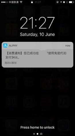 支付寶反饋自動買單結果