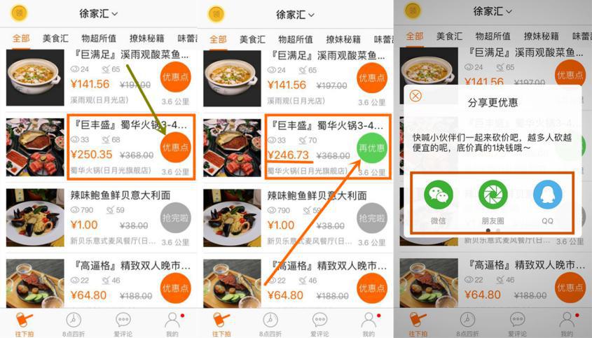 愛搶購有著獨(dú)創(chuàng)的砍價模式,用戶可以主動搶購你的商品和服務(wù),點(diǎn)擊一次即可砍價,如果還想要更低,那就要利用微信等社交渠道來傳播、分享,讓更多人參與砍價,無形中形成線上矩陣式擴(kuò)散,傳播力度更大。