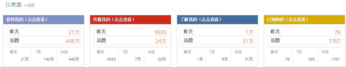 全部實(shí)名注冊的真實(shí)用戶,免費(fèi)提供直觀有效的后臺數(shù)據(jù)統(tǒng)計,讓你清晰的知道有多少人,在什么時間,在什么位置是看到你、是了解你,還是主動傳播你。