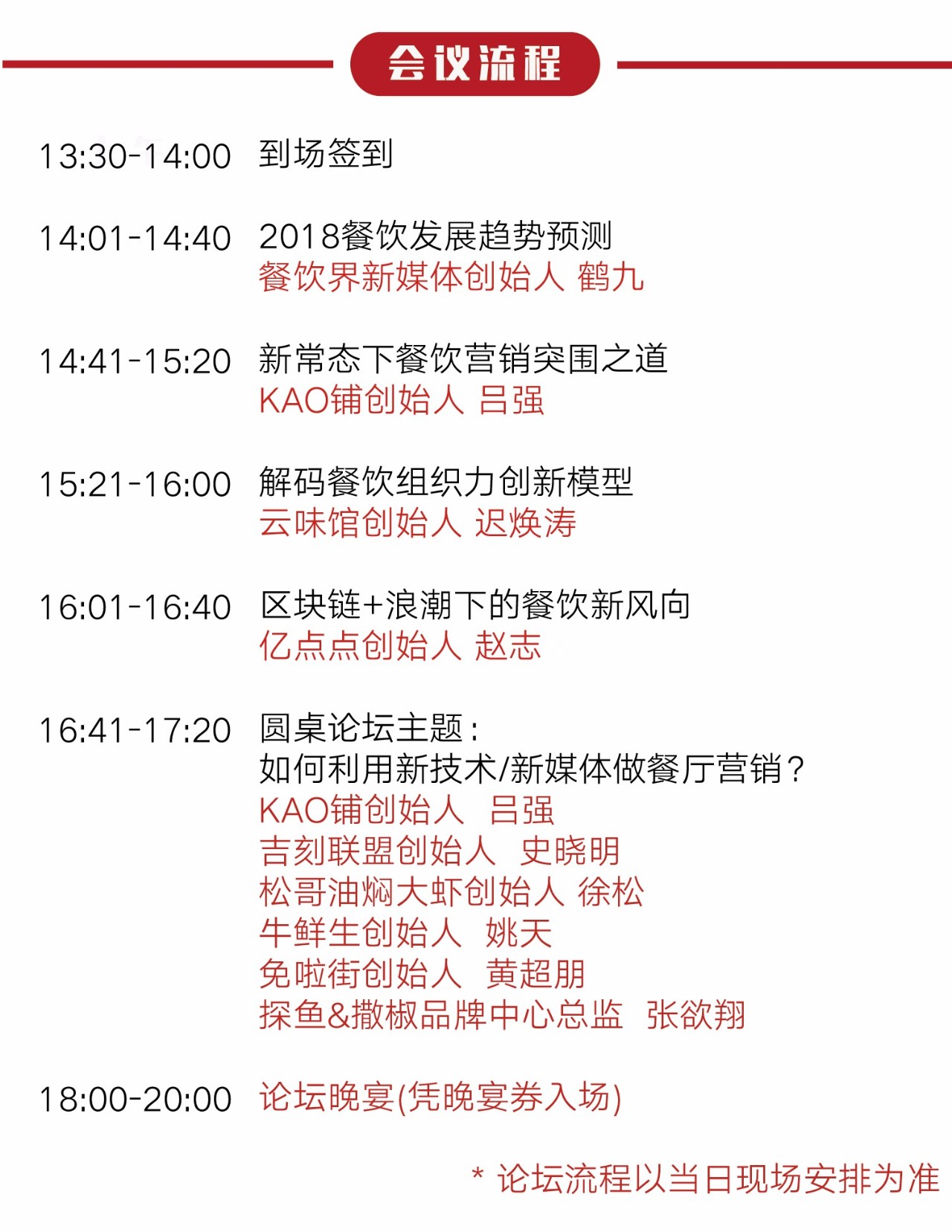 1月18日,餐飲界新媒體將攜手億點(diǎn)點(diǎn)圍繞創(chuàng)新舉行第五屆“創(chuàng)新餐飲風(fēng)暴會”,并特邀請了行業(yè)較具影響力的創(chuàng)新品牌、優(yōu)秀創(chuàng)業(yè)者進(jìn)行“創(chuàng)新”主題的分享和思想碰撞,論壇將首次分享《2017餐飲行業(yè)典型創(chuàng)新案例》、《2018餐飲行業(yè)發(fā)展趨勢預(yù)測》、并發(fā)布餐飲行業(yè)重磅級“營銷創(chuàng)新”工具,打造一場創(chuàng)新十足的餐飲盛宴!