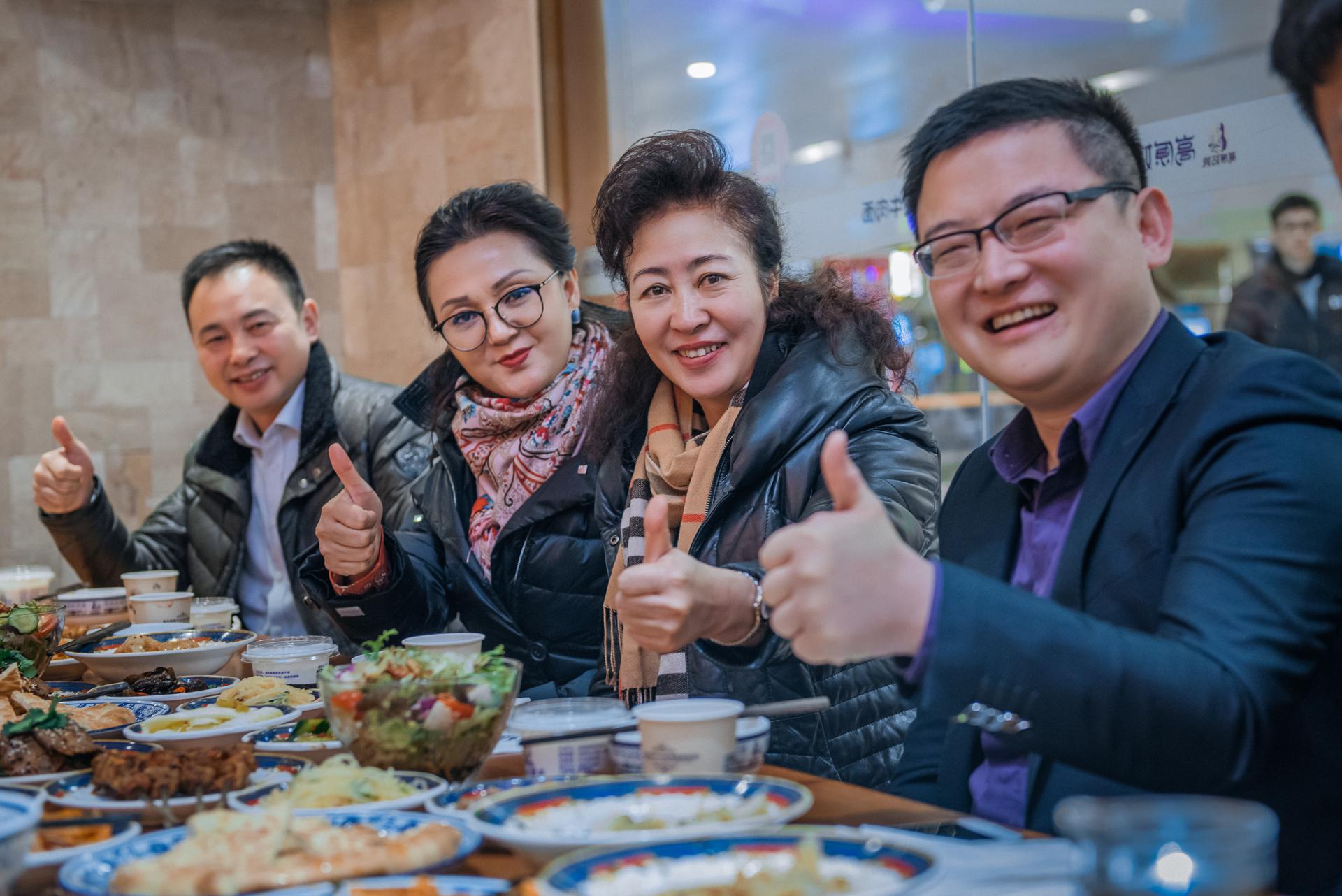 (馬芳與青海省委統(tǒng)戰(zhàn)部副部長(zhǎng)、省工商聯(lián)黨組書記吳捷一行在高原姑娘吃面)