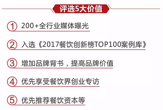 基于此,中華餐飲創(chuàng)新榜TOP100評(píng)選活動(dòng)誕生了!
