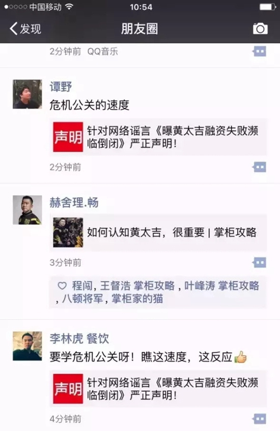 只是,有一點(diǎn)一塊兒君拿不準(zhǔn),從傳言開(kāi)始到流言截止,以及各類(lèi)自媒體的力挺,在不到一天的時(shí)間里與黃太吉方配合得天衣無(wú)縫,怎么都感覺(jué)像是炒作生產(chǎn)線上的一件標(biāo)配品(以小人之心度君子之腹,也許人家公關(guān)水平太高了)!