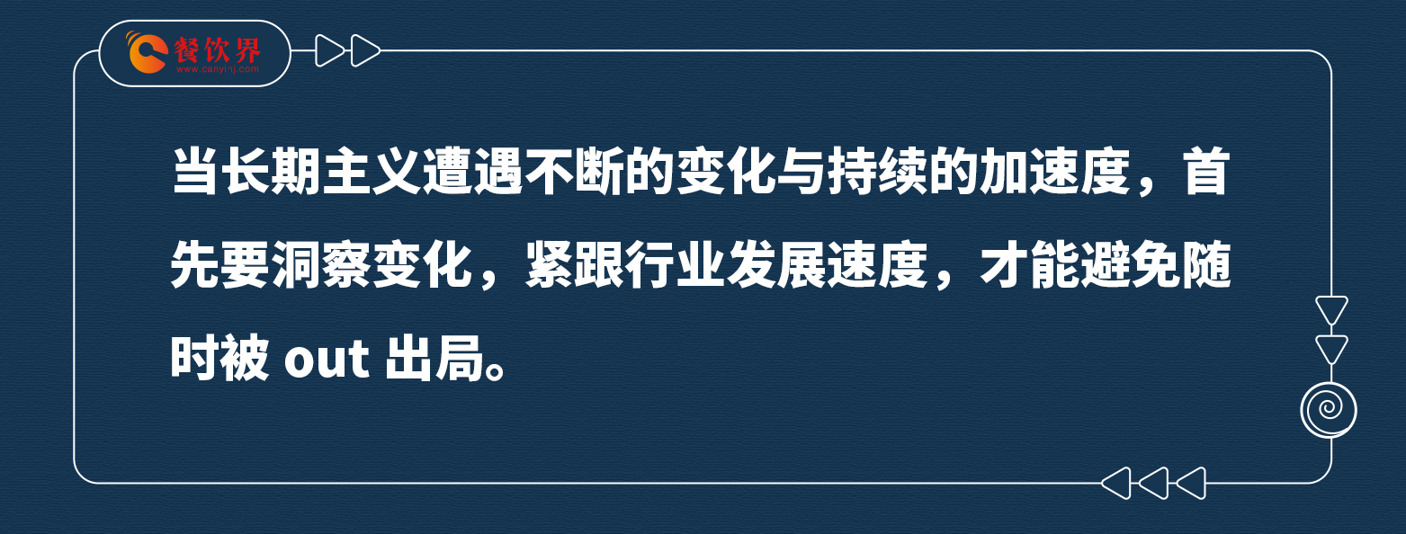 當(dāng)長期主義遭遇不斷的變化與持續(xù)的加速度,首先要洞察變化,緊跟行業(yè)發(fā)展速度,才能避免隨時被out出局。
