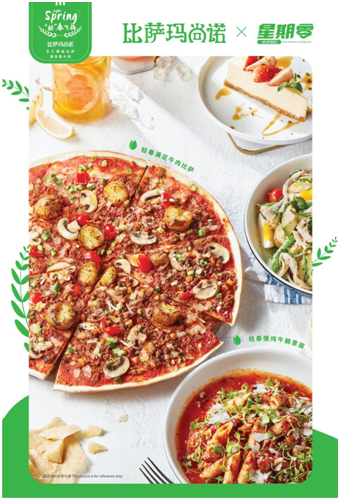 3 月 ,意式高端連鎖餐飲品牌比薩瑪尚諾,攜手中國植物肉頭部品牌星期零,在春天來臨之際推出了主打健康輕熱量的“輕春飛揚”系列。
