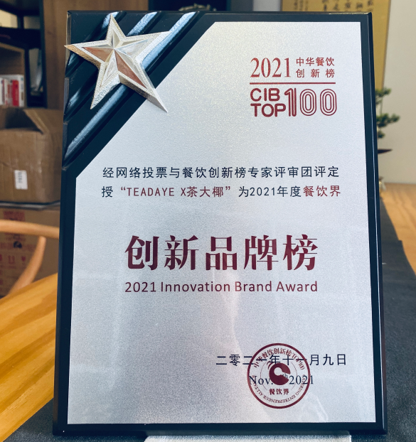 茶大椰斬獲2021中華餐飲創(chuàng)新榜TOP100“創(chuàng)新品牌榜”專欄