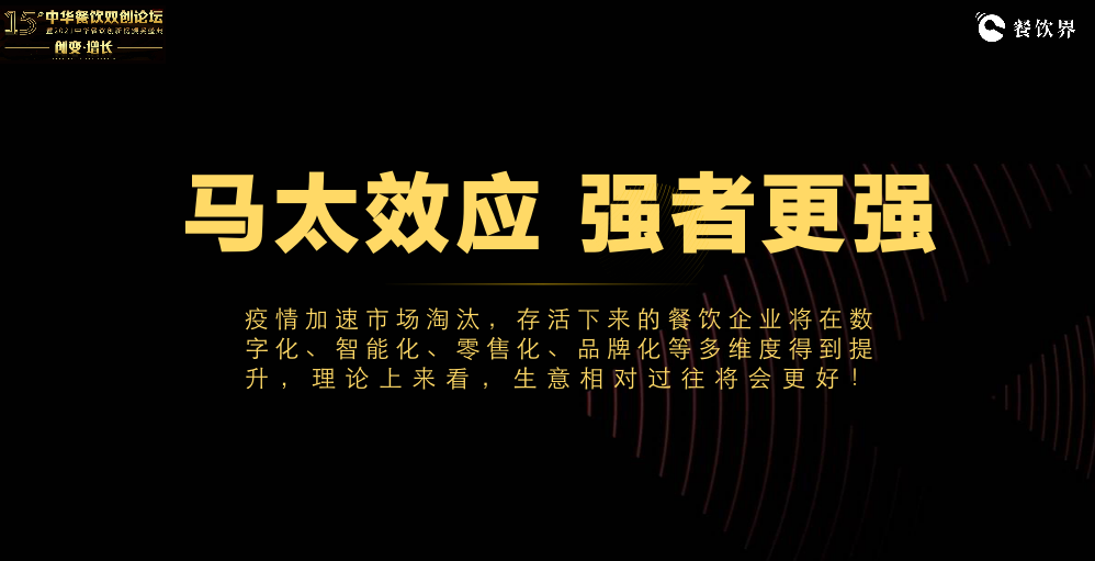由此我們發(fā)現:馬太效應生效,強者恒強!疫情只是加速淘汰,而活下來的餐飲企業(yè),在疫情的自救下,可能在品牌、營銷、數字化、供應鏈等多維度都實現了迭代升級,理論上講,生意有可能更好了。
