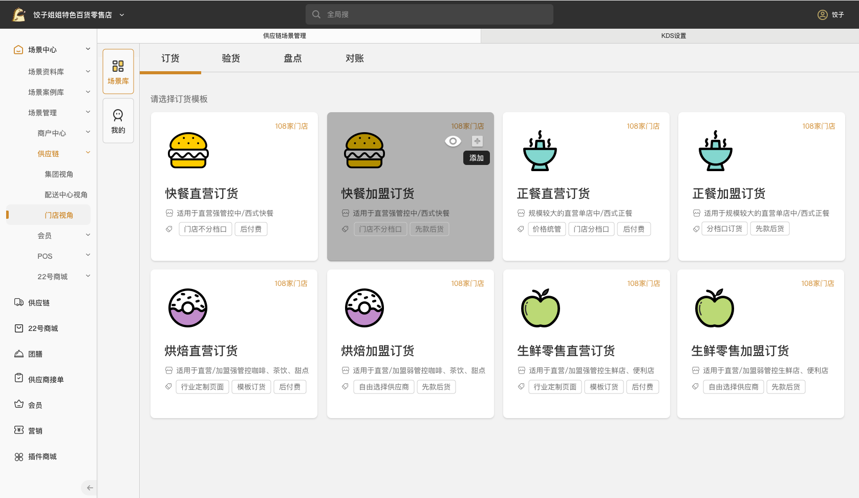 基于服務(wù)頭部連鎖餐企方案的沉淀,暢捷版SCM針對(duì)不同業(yè)態(tài)下的訂貨、驗(yàn)收、盤點(diǎn)等業(yè)務(wù)場(chǎng)景,推出了相應(yīng)的業(yè)務(wù)模板,總部可根據(jù)自身業(yè)務(wù)情況對(duì)業(yè)務(wù)模板進(jìn)行參數(shù)預(yù)設(shè),統(tǒng)一下發(fā)給門店,門店無(wú)需在進(jìn)行繁瑣的參數(shù)配置,直接調(diào)用即可。
