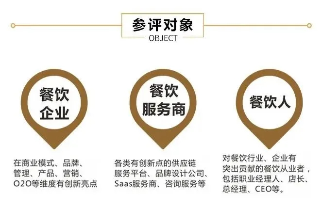 餐飲企業(yè):在商業(yè)模式、品牌、管理、產(chǎn)品、營(yíng)銷、O2O等維度有創(chuàng)新亮點(diǎn)的餐飲企業(yè),“品牌創(chuàng)新榜”為你虛位以待;餐飲服務(wù)商:各類有創(chuàng)新點(diǎn)的供應(yīng)鏈服務(wù)平臺(tái)、品牌設(shè)計(jì)公司、SaaS服務(wù)商、咨詢服務(wù)等,“服務(wù)創(chuàng)新榜”正靜候佳音;餐飲人:針對(duì)餐飲行業(yè)、企業(yè)有突出貢獻(xiàn)的餐飲從業(yè)者,包括總經(jīng)理、CEO、行政總廚等有創(chuàng)新力的個(gè)人,“創(chuàng)新領(lǐng)袖榜”上該有你的風(fēng)采。