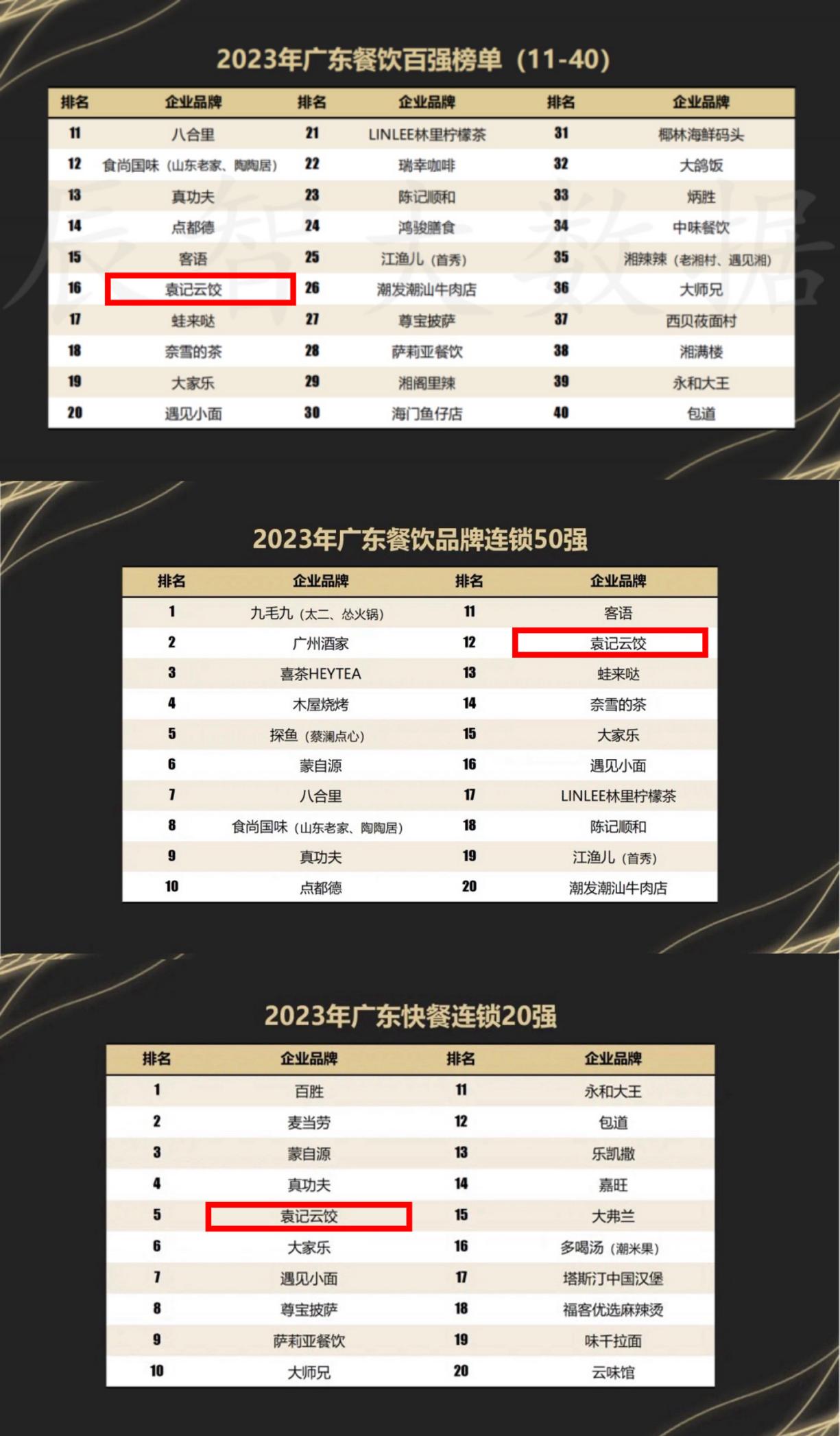 贊!袁記云餃榮獲“廣東省餐飲百強(qiáng)企業(yè)”專欄
