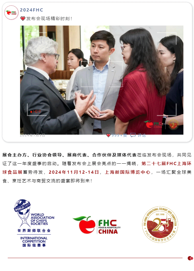 第二十七屆FHC上海環(huán)球食品展暨第二十五屆FHC中國國際烹飪藝術(shù)比賽發(fā)布會,于2024年7月9日在上海艾迪遜酒店召開。