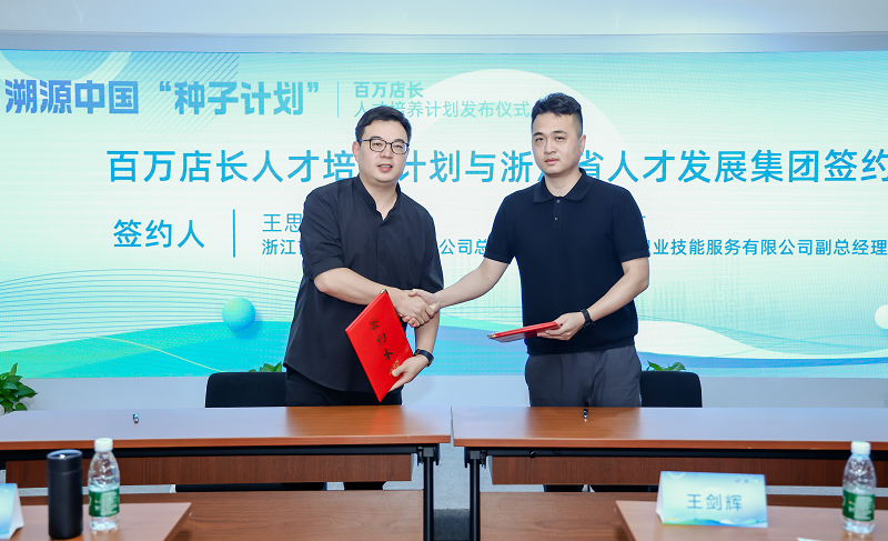會上,百萬店長人才培養(yǎng)項目代表與浙江省人才發(fā)展集團以及絕味食品、和府撈面、仁眾海匯、綠葉水果、盛香亭、廖記食品、犟骨頭、商源集團等就業(yè)合作雙選企業(yè)完成合作簽約。后續(xù)將共同發(fā)揮資源匯聚的乘數(shù)效應,抓住人才成長的“牛鼻子”,推動行業(yè)高質(zhì)量發(fā)展。
