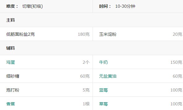 1. 準備食材配料:蛋糕粉【或低筋面粉】、玉米淀粉、雞蛋2個、細砂糖60克、牛奶150克、無鹽黃油60克、泡打粉3克、鹽2克。