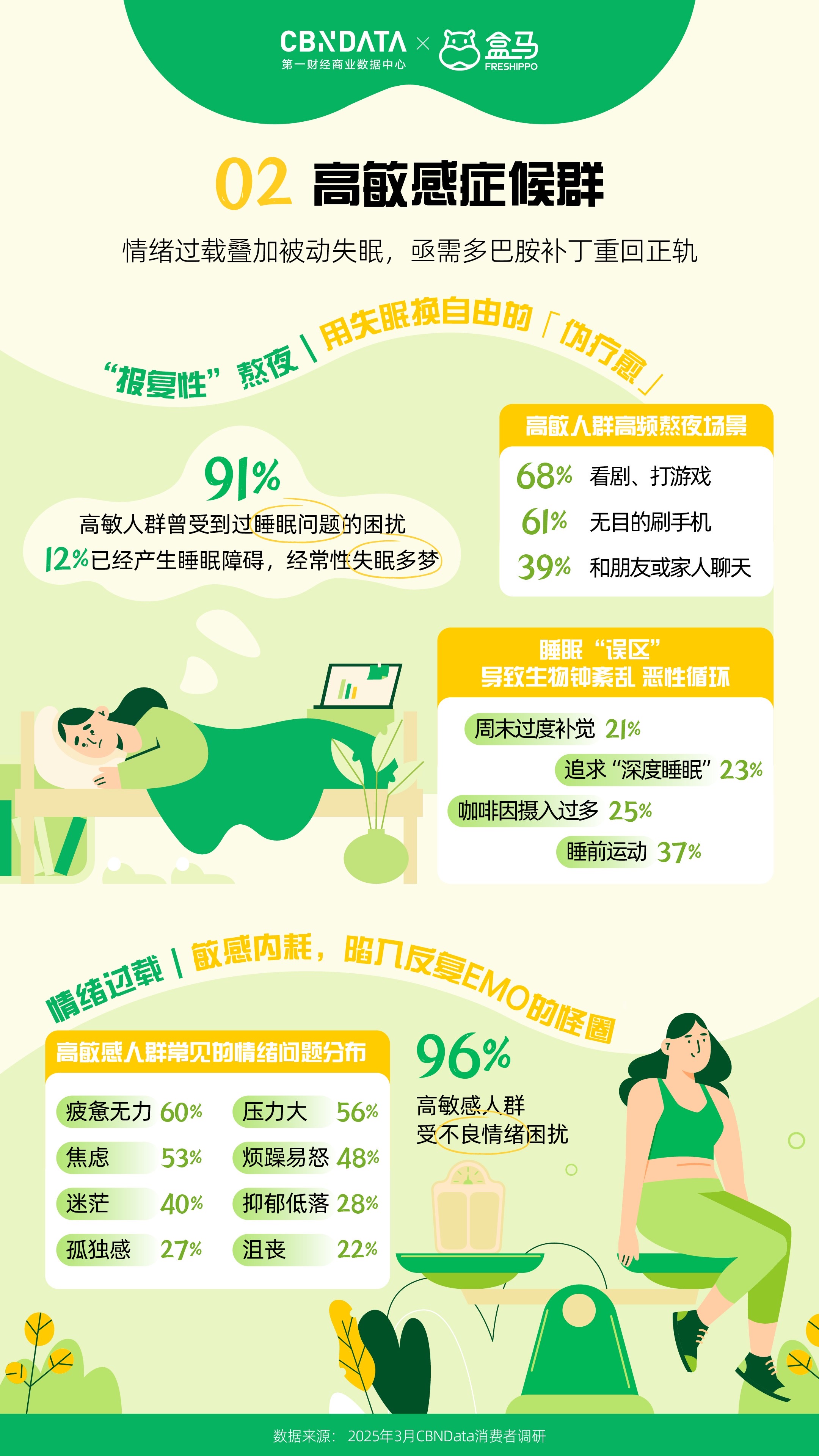 都市生活中,高敏感癥候群是另一類面臨健康挑戰(zhàn)的人群,與朋克加班人不同,他們在情緒和睡眠問題上尤為突出。