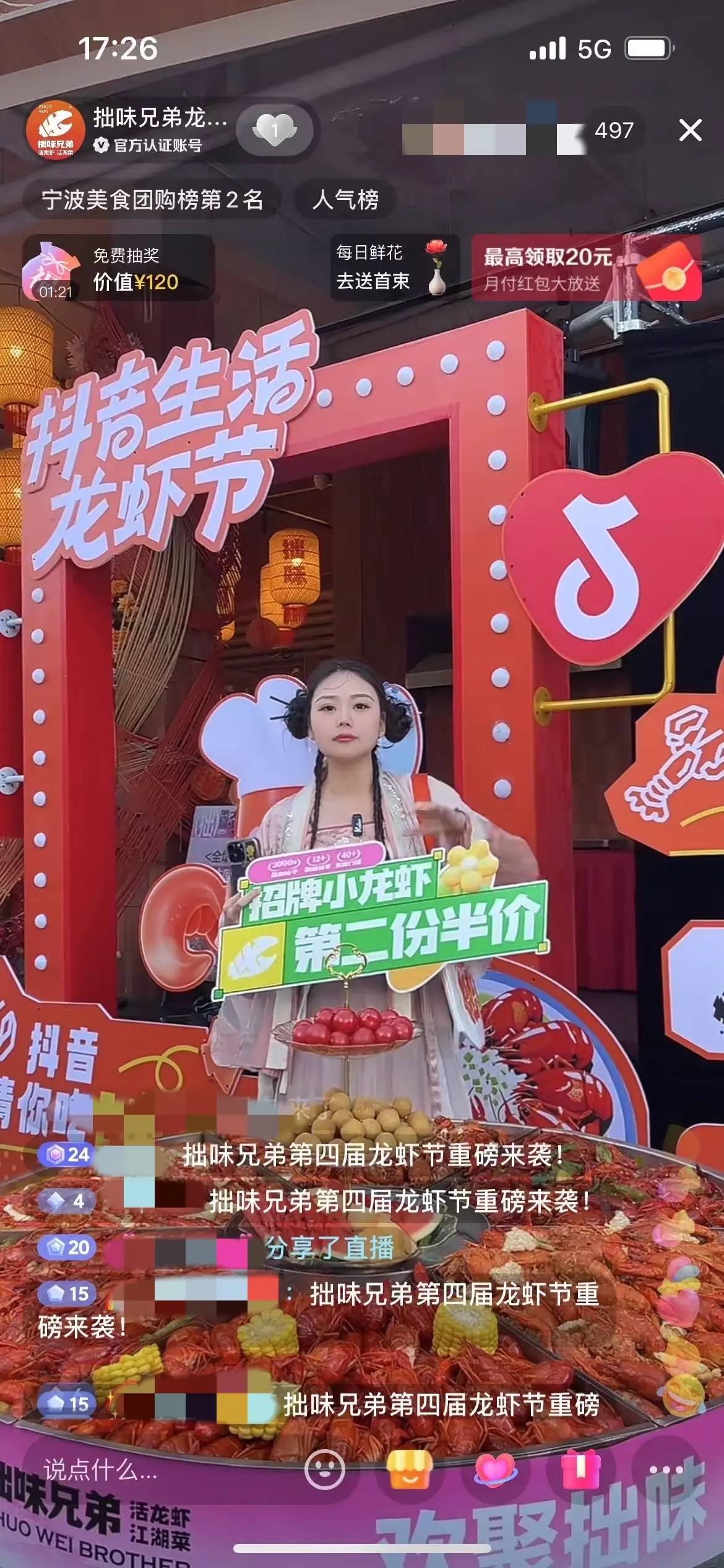 在貨盤上,利用源頭養(yǎng)殖基地自主供貨的優(yōu)勢(shì),拙味兄弟主推9斤4-6人餐套餐,68元代100元代金券和“買三送一”的靈活定價(jià),讓家庭客群擠滿門店;在場(chǎng)景上,拙味兄弟“三條腿走路”——短視頻、自播、達(dá)播均覆蓋,活動(dòng)期支付GMV超1400萬。此外,基于與抖音生活龍蝦節(jié)的深度合作,拙味兄弟獲得了多點(diǎn)位廣告投放、優(yōu)質(zhì)達(dá)人、物料包店等優(yōu)質(zhì)資源,得以快速提升品牌在全網(wǎng)的聲量?!斑@蝦從池塘到餐桌只要6小時(shí),鮮得能咬出汁水?!辈簧傧M(fèi)者在直播間分享了自己的真實(shí)體驗(yàn)。
