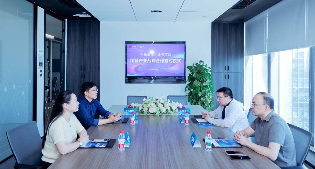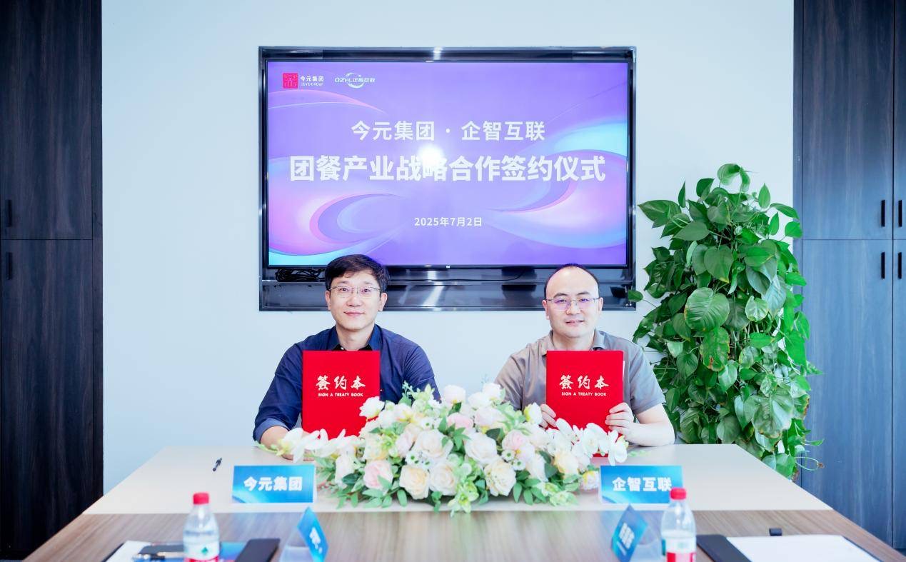 2025年7月2日,今元集團與杭州企智互聯(lián)科技有限公司(以下簡稱“企智互聯(lián)”)簽署戰(zhàn)略合作協(xié)議,雙方將攜手進軍團餐產業(yè),為團餐企業(yè)提供一站式人力資源解決方案。今元集團合作發(fā)展副總裁于曦、今元集團助理總裁裘東萍、企智互聯(lián)創(chuàng)始人兼董事長陳國棟、企智互聯(lián)合伙人兼常務副總杜恒校,以及雙方有關負責人出席簽約儀式。
