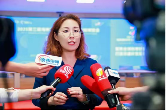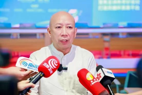 發(fā)布會(huì)現(xiàn)場(chǎng),海南省食品生產(chǎn)與流通協(xié)會(huì)執(zhí)行副會(huì)長(zhǎng)兼秘書長(zhǎng)唐潔春接受媒體采訪