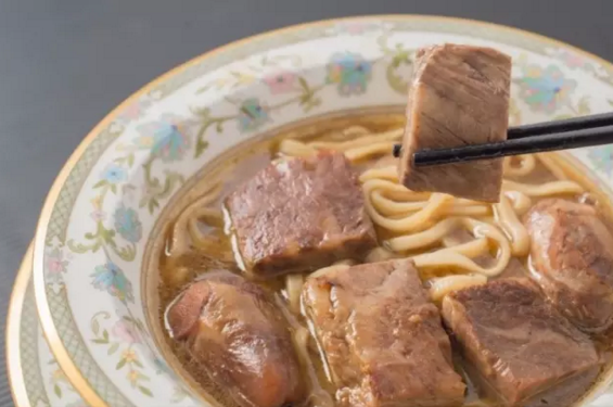 牛肉麵是臺(tái)灣的全民小吃,據(jù)說起源於臺(tái)灣南部眷村,這裡的居民大多從四川遷來,當(dāng)時(shí)眷村裡的媽媽們用豆瓣醬熬煮牛肉時(shí),也不知道是誰(shuí)突發(fā)奇想丟了一把面進(jìn)去,眷村“川味紅燒牛肉麵”開始流行起來,特別是在臺(tái)北,牛肉麵店的密集度可謂全臺(tái)灣第一,牛肉麵也成為臺(tái)灣獨(dú)創(chuàng)一格代表性的美食。