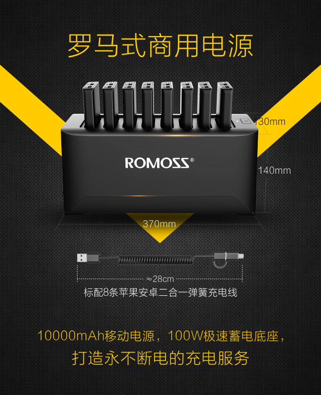 針對以上行業(yè)痛點(diǎn),近日羅馬仕創(chuàng)新研發(fā)出的一款商用移動(dòng)電源,通過“1個(gè)充電底座+8高品質(zhì)商用專屬移動(dòng)電源+8條二合一彈簧充電線”產(chǎn)品創(chuàng)新模式,充分滿足餐廳顧客的消費(fèi)需求,當(dāng)之無愧地成為了具備足夠“創(chuàng)新點(diǎn)”的產(chǎn)品。