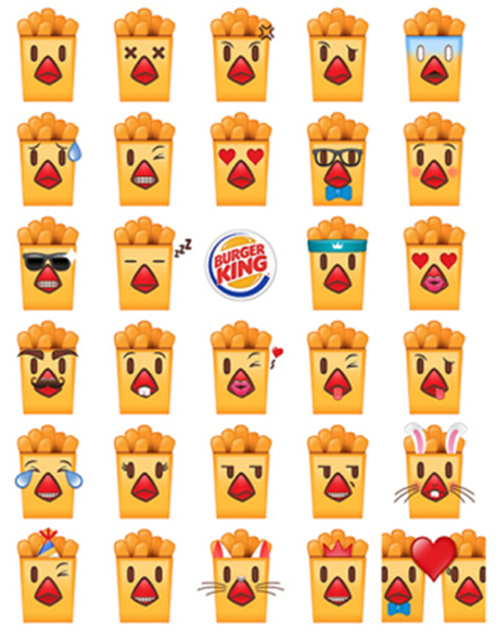 像此前的達(dá)美樂(lè),利用emoji的披薩表情開(kāi)展預(yù)訂服務(wù),把點(diǎn)餐服務(wù)變得有趣而便捷;百事可樂(lè)也想借助emoji瓶身,讓品牌與消費(fèi)者之間達(dá)成交流;像星巴克和漢堡王,則是不惜重本,自創(chuàng)一套emoji表情,將品牌形象與文化融入其中,既給用戶提供了更多的表情選擇,又讓消費(fèi)者通過(guò)表情的使用,加深了其對(duì)品牌的視覺(jué)記憶。